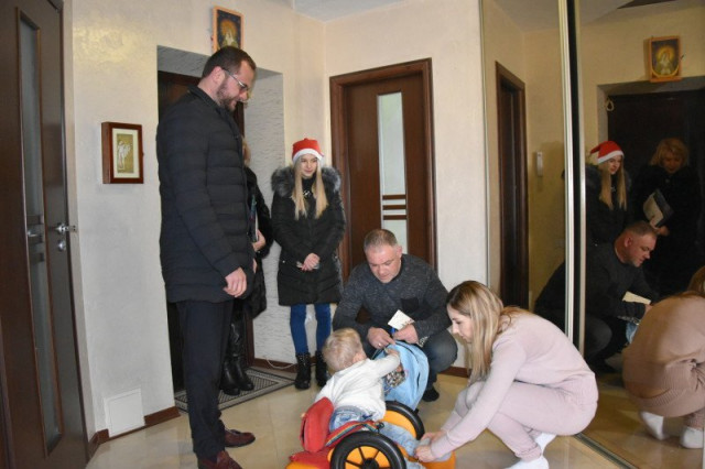 Сьогодні, у День Святого Миколая, радник міського голови Ігор Поліщук, начальник управління соціальних служб для сім’ї, дітей та молоді Ліна Галан та «помічники Святого Миколая» відвідали діток з особливими потребами. Вони подарували малечі рюкзачки та солодощі, а їхнім батькам – продуктові набори.
