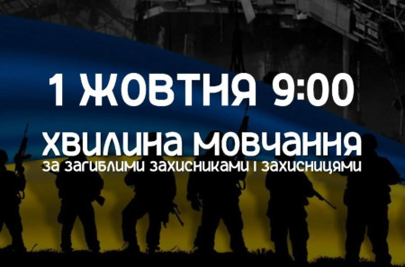 У День захисників і захисниць України, 1 жовтня, о 9:00 відбудеться загальнонаціональна хвилина мовчання.