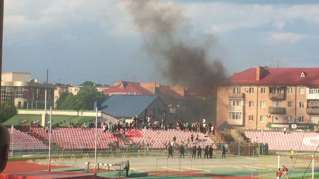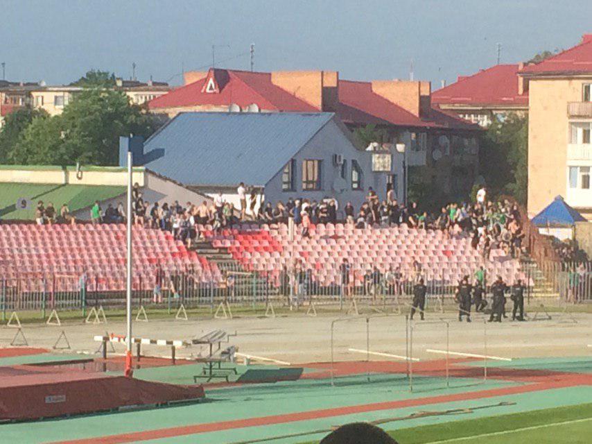 Вболівальники «Карпат» агресивно поводяться на стадіоні, зокрема, ламають сидіння, а також палять фаєри поза межами стадіону. Поліція наразі не втручається.