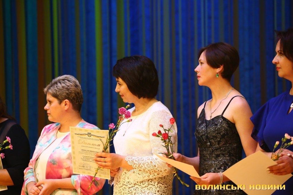 Найкращих педагогів області вітали заступник голови Волинської ОДА Світлана Мишковець, заступник голови облради Роман Карпюк, виконувач повноважень Луцького міського голови Григорій Пустовіт та начальник управління освіти, науки та молоді Волинської ОДА Людмила Плахотна.