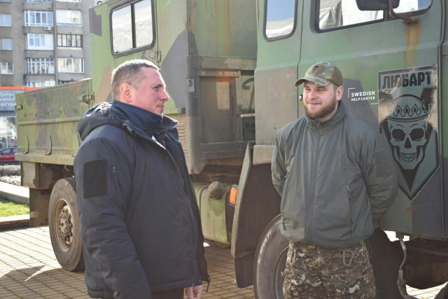 «Сьогодні для новоствореного 5 батальйону спеціального призначення 12 бригади НГУ «Азов» передали дві повнопривідні вантажівки марки Skania, які перебували в резерві шведських військових. До речі, батальйон створений на основі ОЗСП «Любарт»», – зазначив очільник області Юрій Погуляйко.