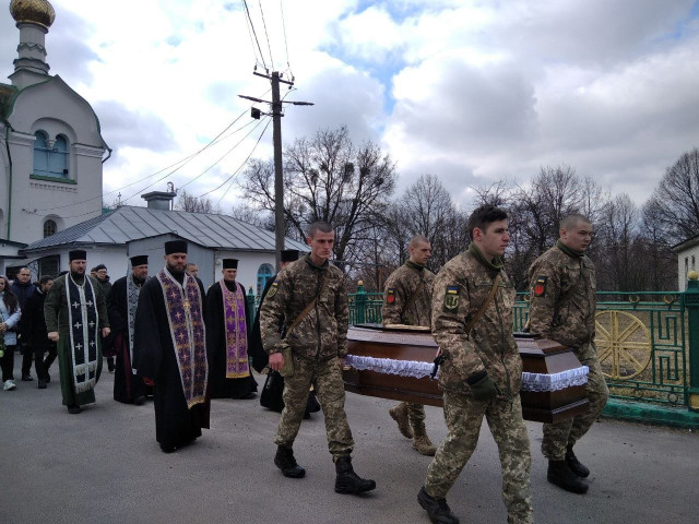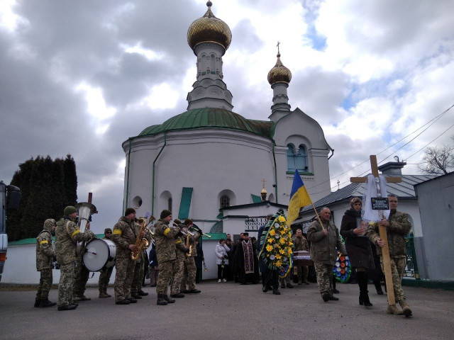 Поховали загиблого Героя на Федорівському кладовищі під оркестровий Гімн України та прощальні постріли військових.