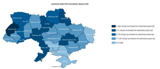 Перше місце за кількістю записів реєстру в розрізі областей стала Львівщина. На її території зафіксували 243 записи, 216 із яких – за судовими рішеннями. Зазначається, що 153 правопорушення визнали кримінальними, 63 – адміністративними. За дисциплінарними стягненнями було зареєстровано 27 правопорушень.