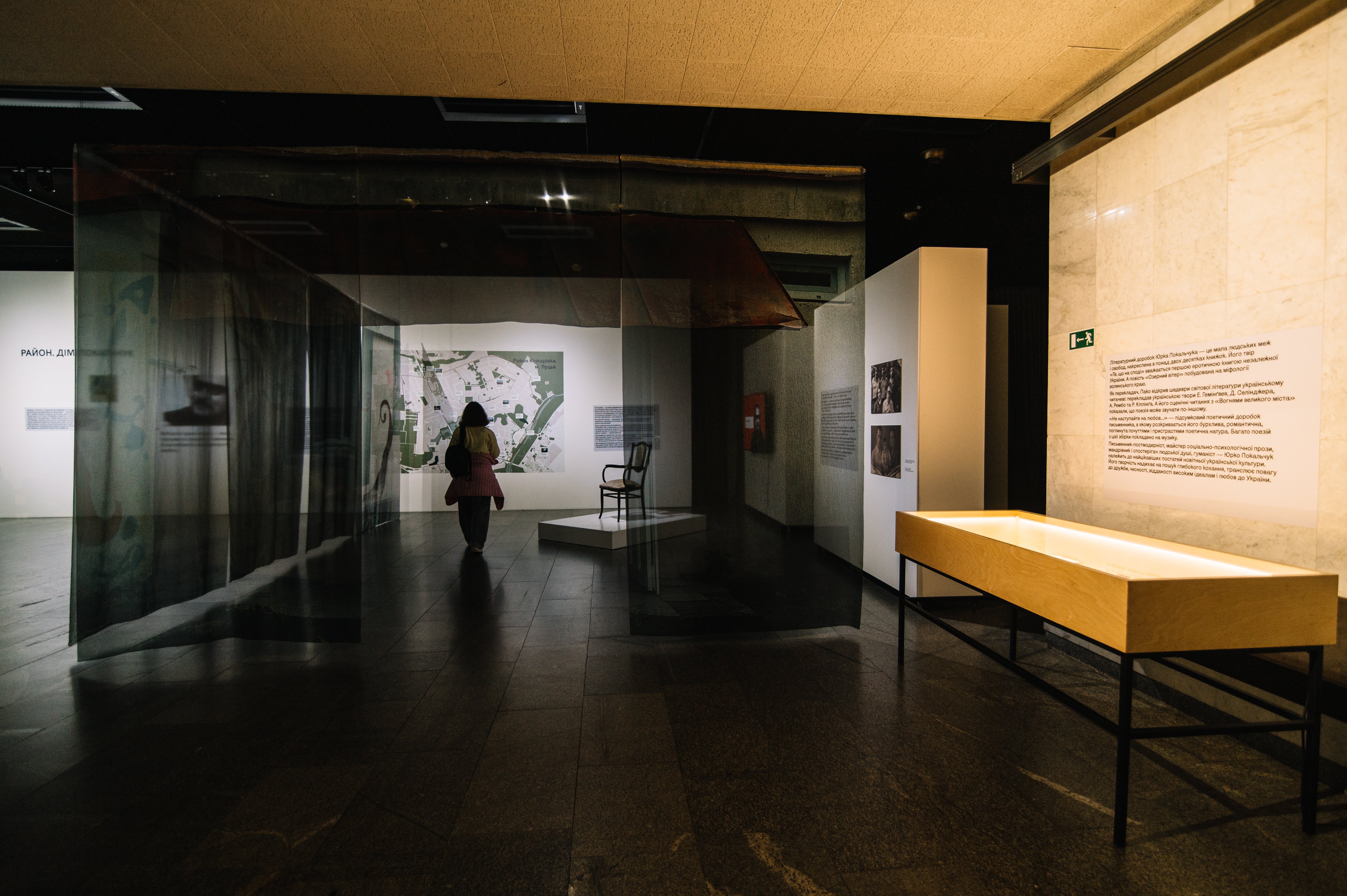 В експозиції на відвідувачів чекала жива мапа району, складена з фактів, фрагментів інтерв’ю та інсайтів дослідження Urban Vision Lutsk. Також на стенді була представлена інсталяція будинку з експозиційною зоною, що відтворює атмосферу родинної оселі Покальчуків у Луцьку. Каркас інсталяції мав вигляд дому завдяки надрукованим на тканині фотографіям фактури стін справжнього будинку на Кічкарівці. Архівні фотографії, книги та рукописи Юрка Покальчука познайомили відвідувачів з творчістю та життям письменника.