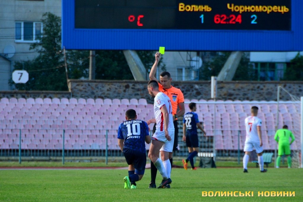 Очевидно, що «Волинь» хотіла зрівняти рахунок, але на 68 хвилині це завдання ускладнилося, оскільки другу жовту картку отримав Максимчук. До слова, молодий захисник вийшов на поле наприкінці першого тайму, замінивши Ляшенка.До кінця гри кілька дальніх спроб мав Рябов, але на більше «хрестоносці» не спромоглися, тож фінальний свисток зафіксував мінімальну перемогу «Чорономорця» – 1:2.«Волинь» завершила сезон не в найкращому настрої, посівши сьоме місце у турнірній таблиці з 46 очками.