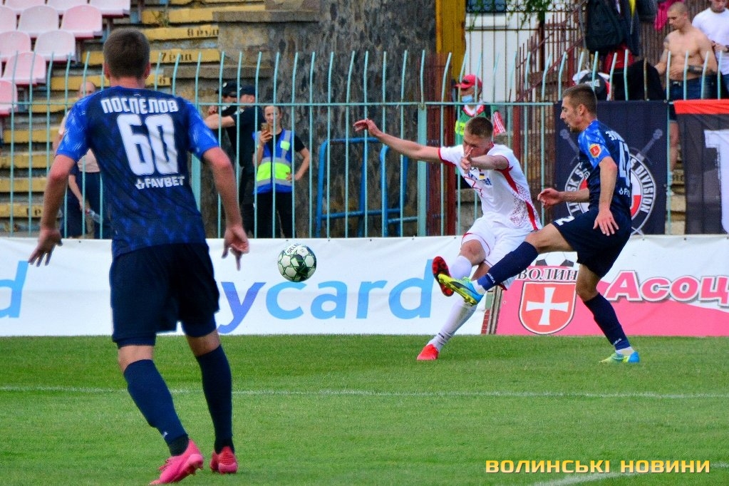 «Волинь» відповіла на 16 хвилині: Ляшенко прострілював на Оринчака, однак першим на м’ячі опинився голкіпер «моряків».А на 30 хвилині «Чорноморець» відкрив рахунок у матчі: Бугай головою зумів поцілити у ворота Леванідова після подачі партнера зі стандарту – 0:1.«Хрестоносці» зуміли зрівняти рахунок ще до кінця першого тайму. Климець прорвався по флангу та небезпечно пробив з гострого кута, кіпер відбив м’яч на номінального вінгера, і захисник одеситів сфолив – арбітр вказав на точку. Одинадцятиметровий впевнено реалізував Богдан Оринчак – 1:1.Початок другого тайму теж не був найкращим для «Волині». На 52 хвилині «Чорноморець» знову вийшов вперед: Авагімян отримав діагональ з глибини поля та перекинув Леванідова, який вийшов з воріт – 1:2.