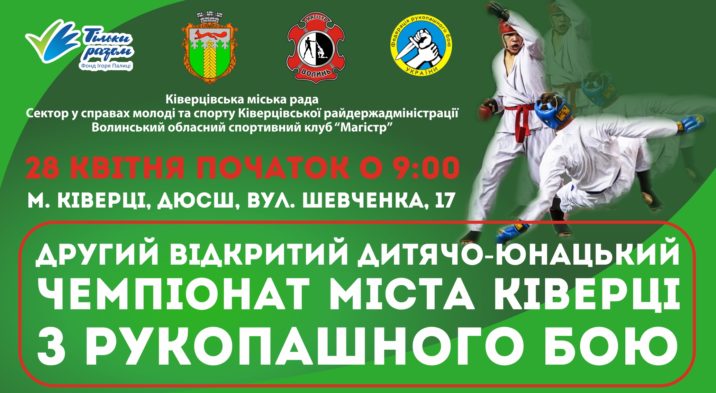 28 квітня у Ківерцівській дитячо-юнацькій спортивній школі відбудеться другий відкритий чемпіонат міста Ківерці з рукопашного бою. Організаторами заходу є Волинський обласний спортивний клуб «Магістр».