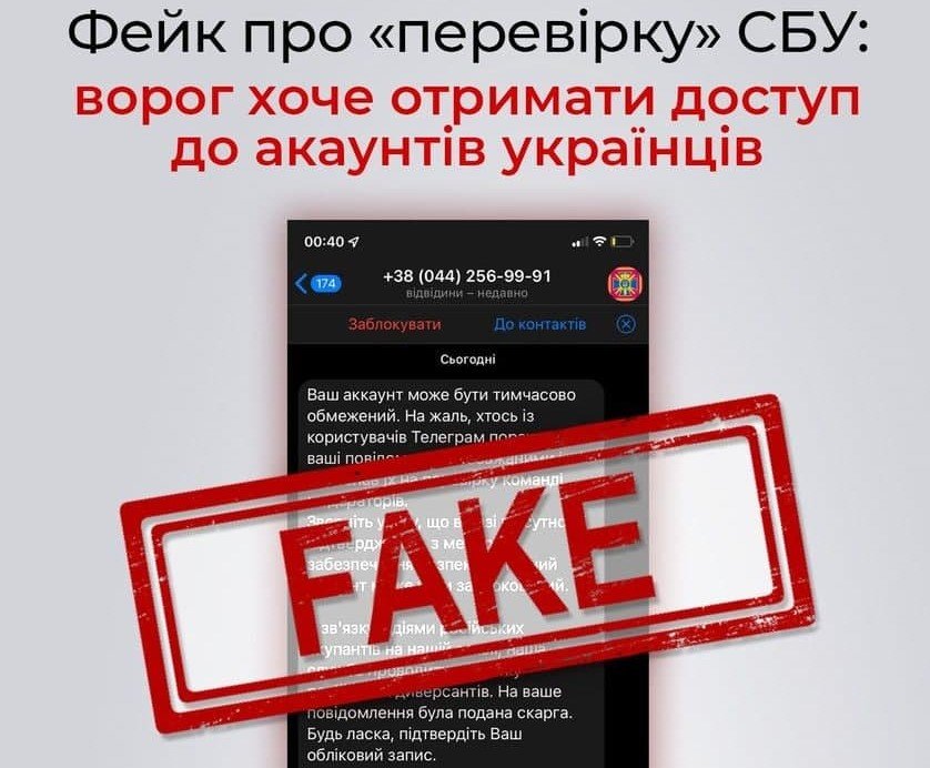 У Telegram та інших месенджерах розповсюджують фейк від імені Служби безпеки України. Нібито СБУ вимагає від українців перейти за посиланням, аби «пройти перевірку». Це посилання, схоже на адресу сайту СБУ, але воно фейкове і не веде на онлайнресурс Служби.