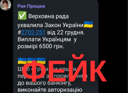 Суть полягає у тому, що шахраї через повідомлення в месенджерах пропонують отримати грошову допомогу, посилаючись на закон, нібито ухвалений Верховною Радою, якого насправді не існує.