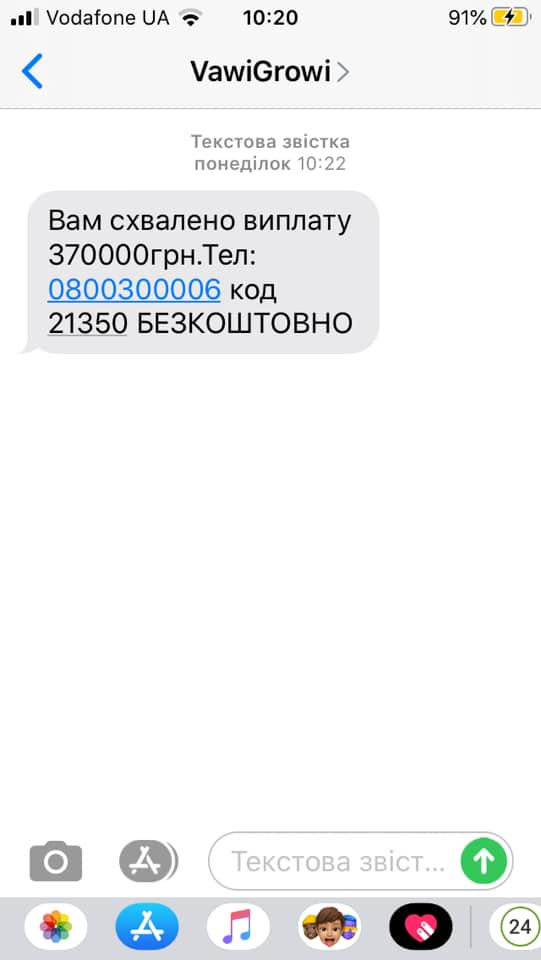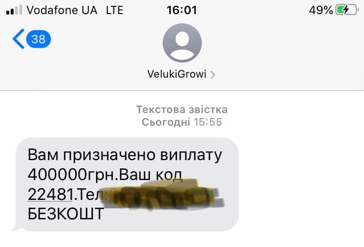 Неодноразово українці отримували на свої приватні телефони СМС наступного змісту: «Ви виграли новеньку автівку/ квартиру у центрі мегаполісу/кругленьку суму».
