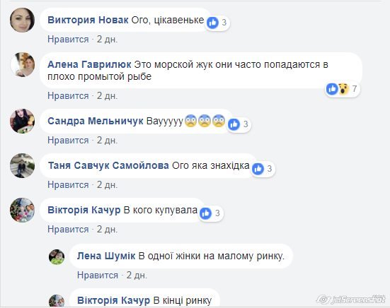 “Купили у Нововолинську на ринку тюльку і уже в дома відкривши пакетик із тюлькою найшли оцю тварюку. Я в шоці. Що це? Будьте обережні коли купуєте щось із риби”, – йдеться у дописі.