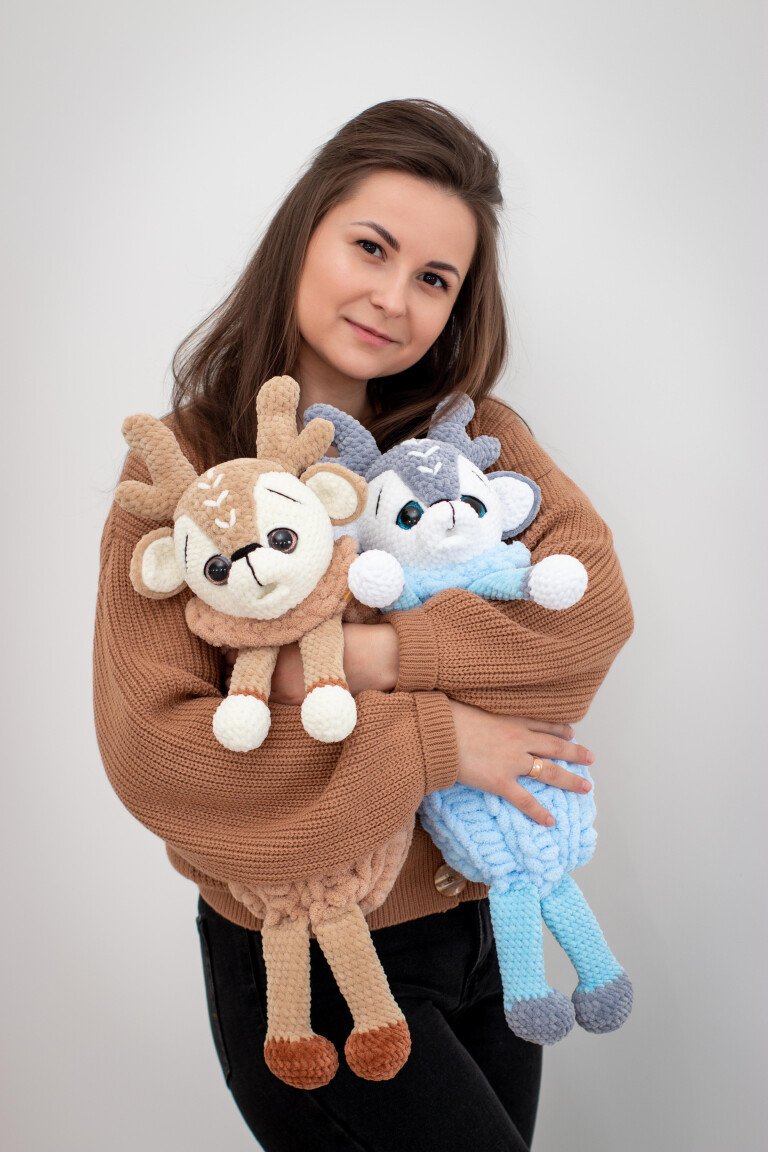 Почалося все, розповідає, у період декретної відпустки. Хотілося виготовити для майбутньої дитини іграшку не таку, як в магазині. Також у доробку майстрині є брязкальця у вигляді мультяшних героїв, гризунці, оздоблені буковими кільцями, щоб дитинка могла безпечно гризти. Наприклад, кріплення, що його використовує умілиця для фіксації певних елементів, зубами не відірвати, бо зроблено воно з використанням каркасної проволоки, на якій закріплена спеціальна заглушка.Усе почалося із забавки, згодом продукти творчості Оксани Йовчик стали затребуваними серед споживачів, зокрема, на просторах торговельних платформ у соцмережах. Саме звідти умілиця черпає нові тренди та техніки виготовлення своїх чергових м’якеньких шедеврів.