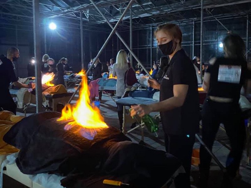 Світязянка Оксана Черняк разом із 50 масажистами встановили рекорд України одночасного вогняного масажу.