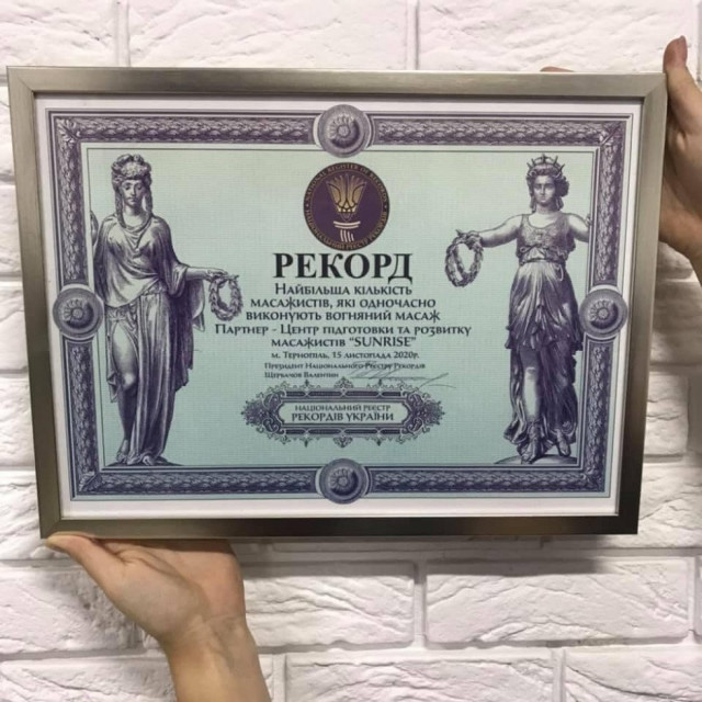 Суть рекорду полягала в тому, що 50 людей у 2 заходи робили спершу 25 хвилин класичний масаж, а потім вогняний.