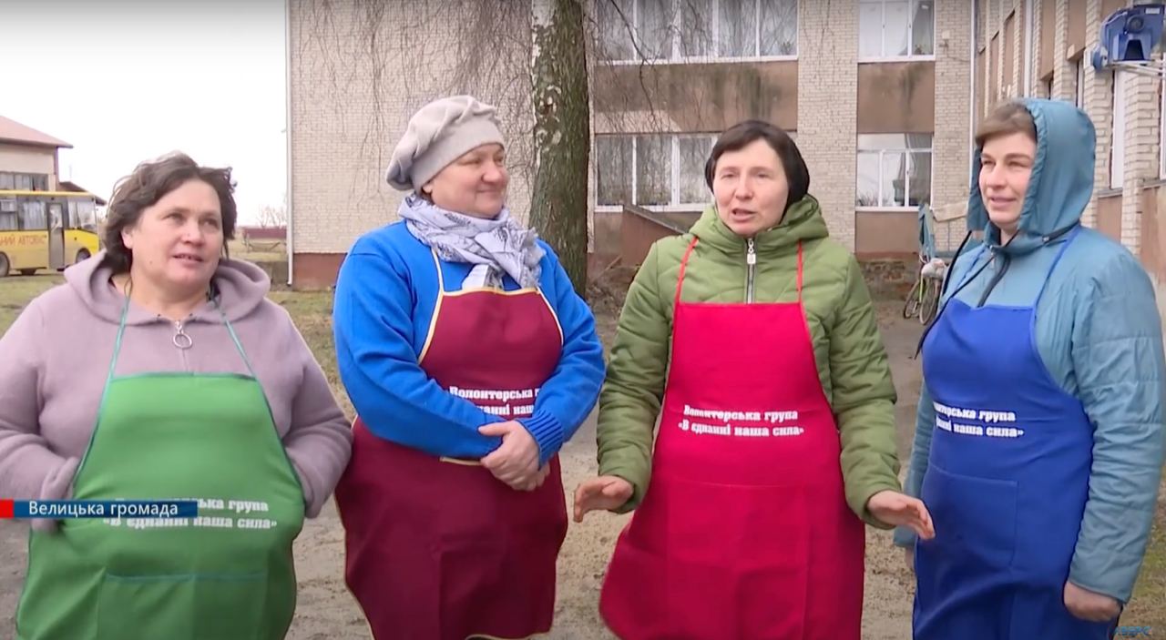 «Упродовж півтора року у Велицькій громаді діє волонтерська група під назвою «В єднанні наша сила». Є 12 жінок, які для армії готують тушонки, м’ясні каші. Спершу половину сировини давав я, половину – збирали тут», – пригадав волонтер Ігор Шевчук.