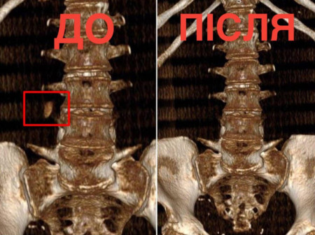 Провели комп’ютерну томографію та виявили камінь верхньої третини правого сечоводу розміром 19х6 мм, повідомляють на сторінці лікарні у Фейсбук.