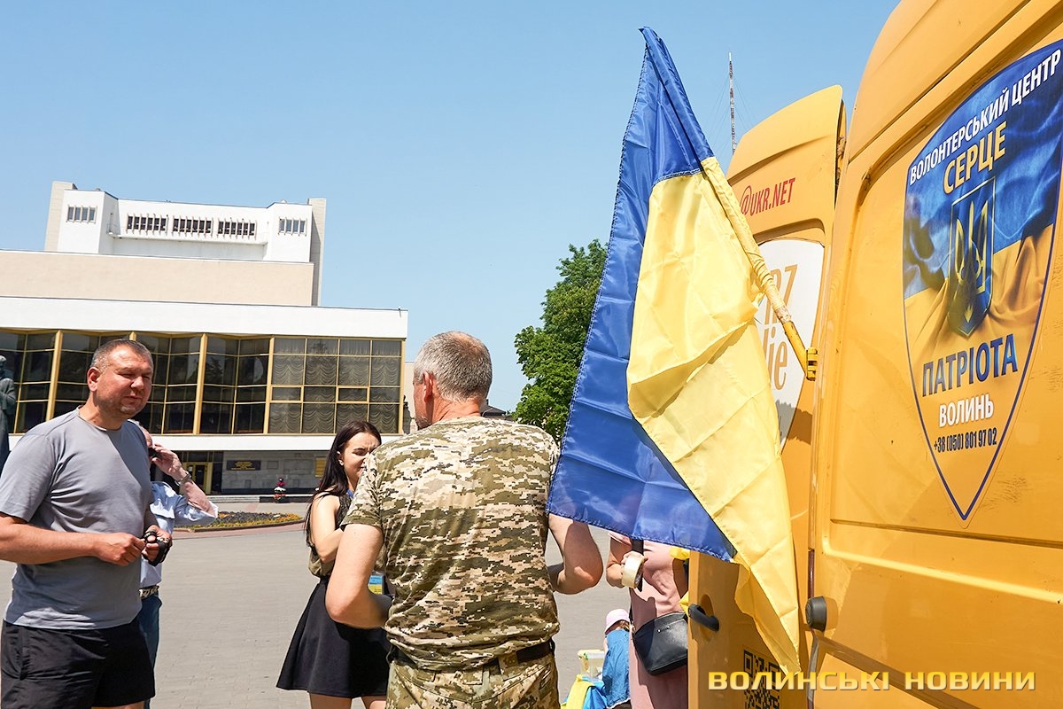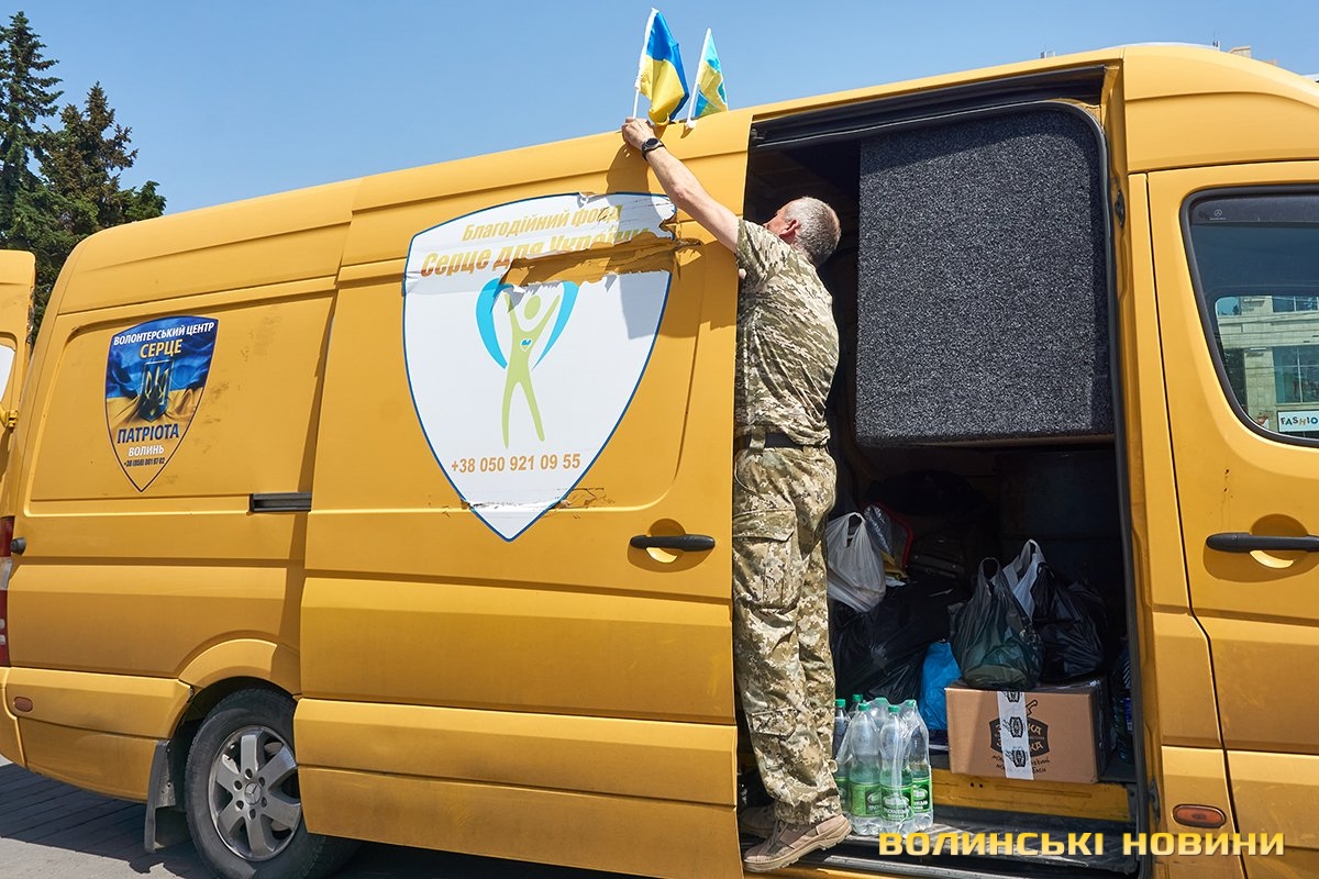Яскравий бус із прапорами став своєрідною візитівкою «Серця патріота» та добрим знаком для воїнів. Коли вони його бачать, то знають – до них дійшов промінчик домашнього затишку та любові. Це дитячі малюнки, листи, солодощі, необхідні побутові речі і, звісно, найсмачніша домашня їжа.Ось і сьогодні усе це, а ще ліки, запчастини, побутову техніку та інструменти для укріплення бліндажів підготували небайдужі люди захисникам України. Усе довелося збирати дуже швидко, адже до волонтерів звернулися бійці, які й попросили про допомогу. Якщо підготовка попередніх поїздок займала близько місяця, то цього разу на все пішло чотири дні.«На щастя, люди відгукнулися дуже швидко, – розповідає волонтерка Ольга Балицька. – Розуміємо, що зараз дуже важка ситуація. А тому щиро дякуємо за допомогу і родинам солдатів, і простим громадянам, і громадам, небайдужим бізнесменам, підприємствам та благодійникам. Усі – дуже великі молодці!»Приємно, що активну участь у таких акціях бере молодь. Волонтерка Уляна Степаненко, зокрема, нині не уявляє свого життя без допомоги бійцям. «То постійна важка робота: не лише збір вантажів, але й багато дрібніших клопотів. Але це – частина мого життя. Не уявляю себе поза цим».Як розповідає засновник «Серця патріота», депутат міськради, волонтер з багатолітнім стажем Сергій Балицький, транспорт вирушає в напрямку Мар'їнки, де розташовані кілька підрозділів, бійці яких попросили про допомогу. Є і посилки, адресовані конкретним солдатам. Бус дозавантажиться у Рівному та Києві, а вже звідти попрямує на схід.Уже традиційно перед тим, як сісти за кермо, Сергій Балицький прикріплює до транспорту прапори України. До нього підходять друзі та просто перехожі – бажають щасливої дороги, долучаються до збору коштів, пропонують допомогу. Приємною несподіванкою стала поява на Театральному майдані радника міського голови Ігоря Поліщука та заступника міського голови Костянтина Петрочука, які також побажали волонтерам швидше повертатися додому.Хвилини перед поїздкою минають традиційно: спільна світлина з прапором та виконання Гімну України. Після цього лунає «Слава Україні!» і завантажена автівка вирушає у далеку дорогу на схід.Фото Олександр Дурманенко.