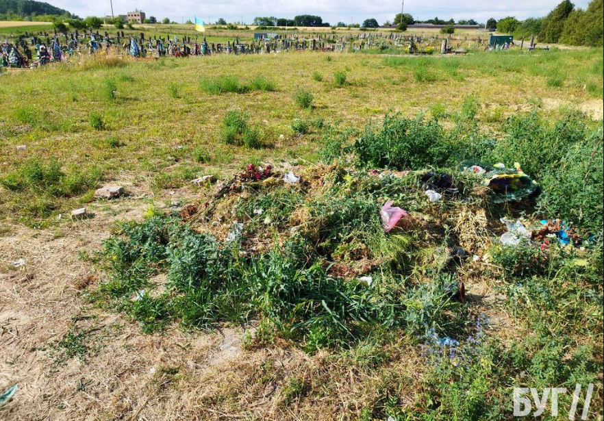 Вона говорить, що місцева влада два місяці тому все там прибрала, бо почали ховати наших загиблих воїнів. Але люди знову викидають сміття просто біля могил на місці, де цього не повинно робити, бо по периметру всього кладовища є смітники.
