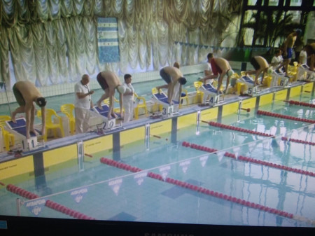 Микола Мороз у запливі на спині на дистанції 100 м став п’ятим, а на дистанції 50 м – восьмим. Тренер О. Корець.