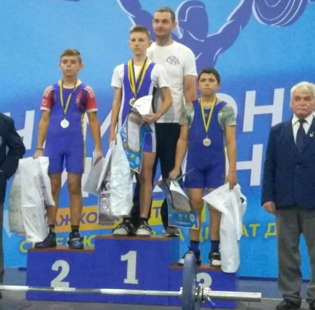 Нікітін Богдан у ваговій категорії 45 кг з результатом 55 кг у ривку та 66 кг у поштовху, що в сумі двоборства складає 121 кг.