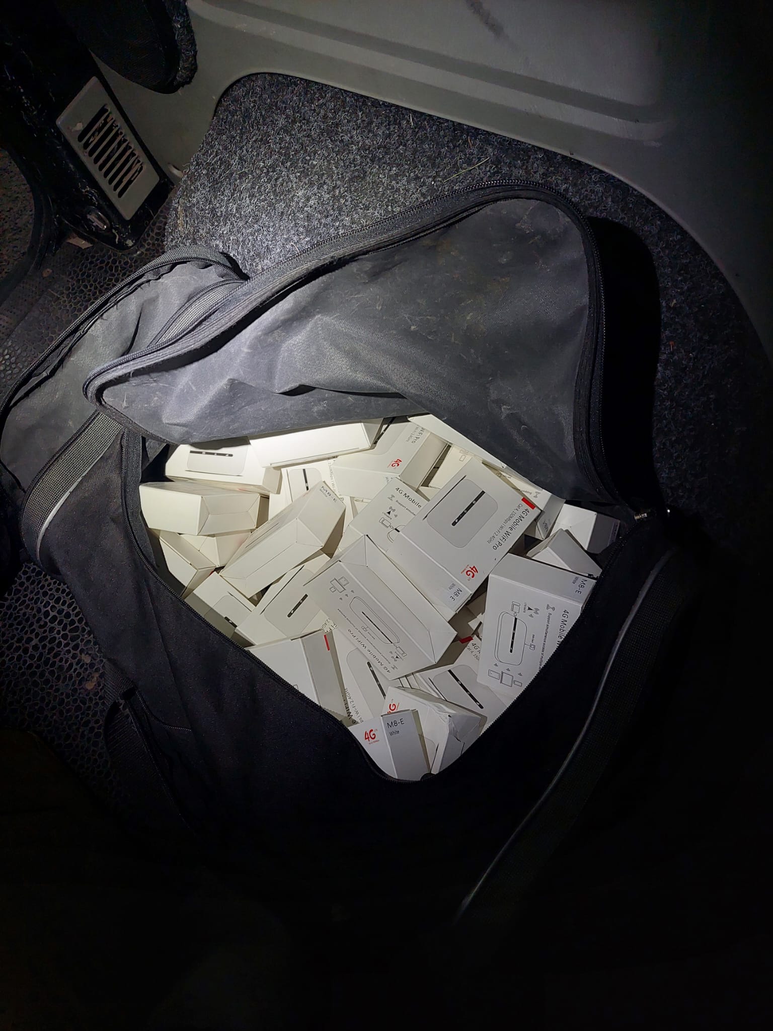 Тим часом з багажного відсіку «Рено» цього громадянина тимчасово вилучили 230 кг електрокабелю, автозапчастини, майже 200 нових модемів/роутерів.