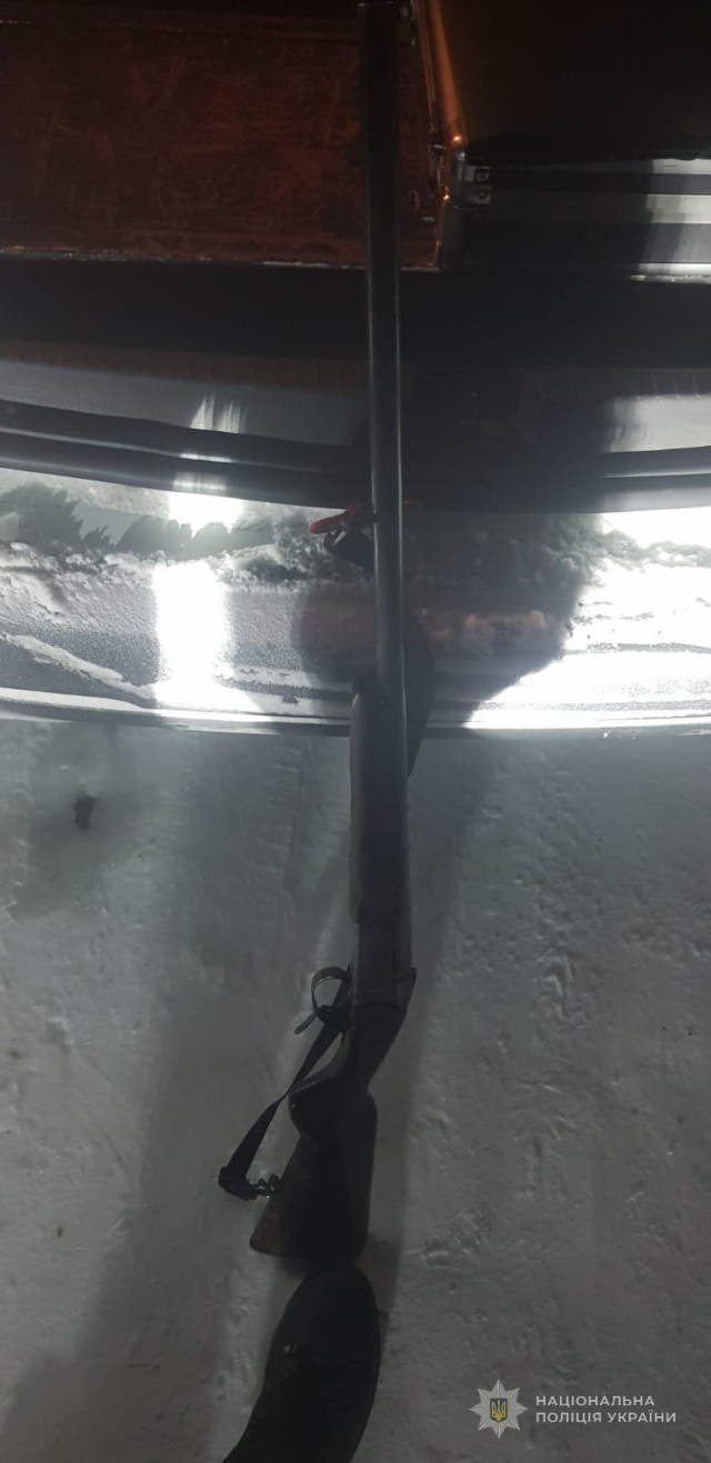 Наряд групи реагування патрульної поліції зупинив водія Nissan Qashqai за порушення ПДР. Під час огляду поліцейські виявили в транспортному засобі рушницю без чохла і тушки зайця та кози, застрелених незаконно.