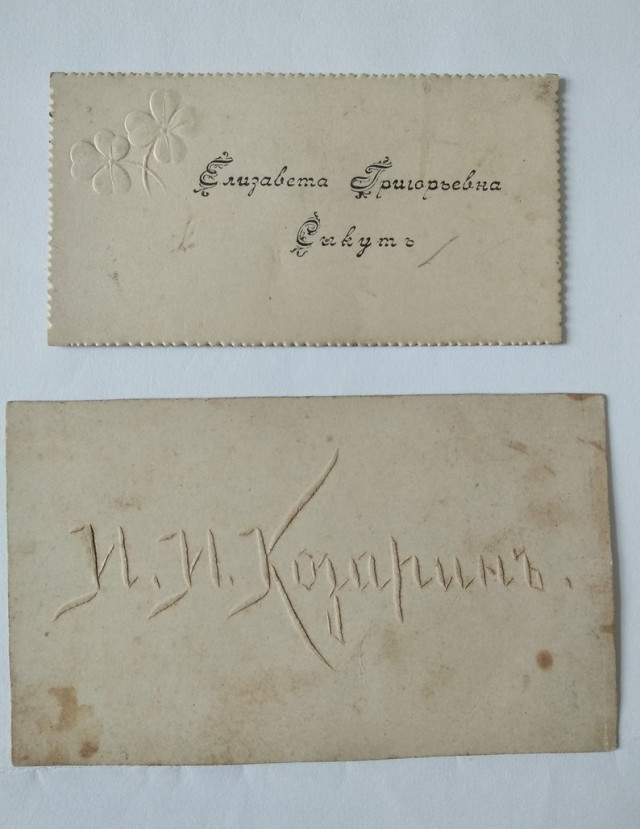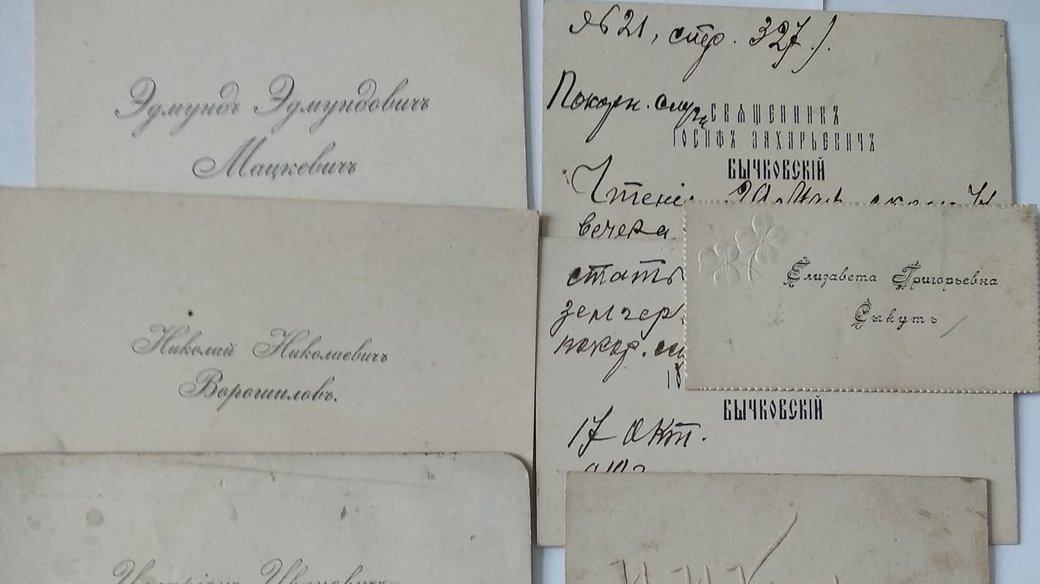 «Усі візитні картки – паперові, періоду першої половини ХХ століття, їх стан різний, – говорить Олена Черенюк. – Чоловічі візитки відрізняються від жіночих: чоловічі більші за розміром, жіночі оздоблені квітками».