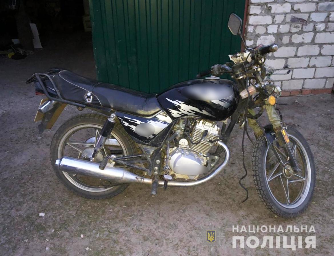 Потерпілий до лікарні не госпіталізовувався. Поліцейські мотоцикл вилучили.