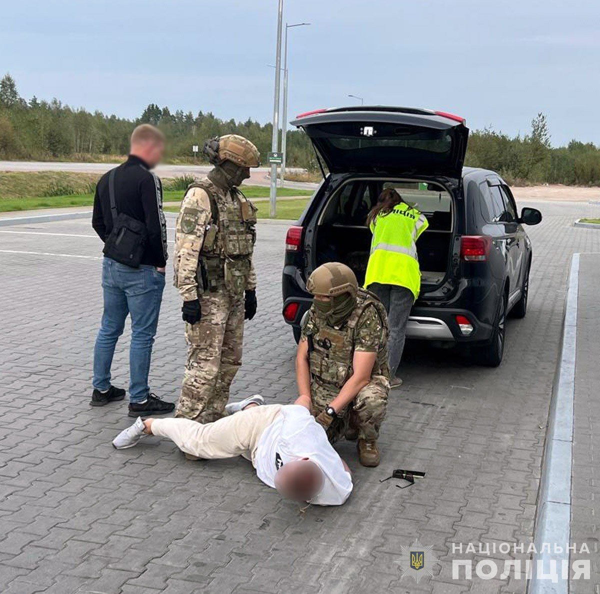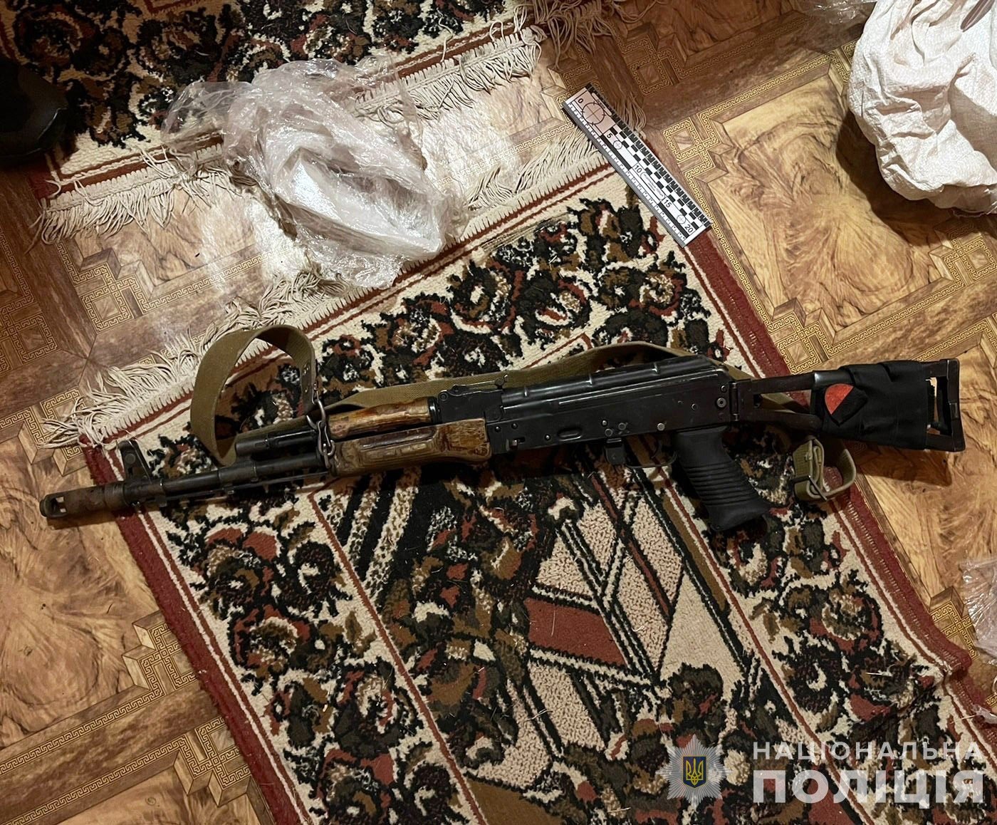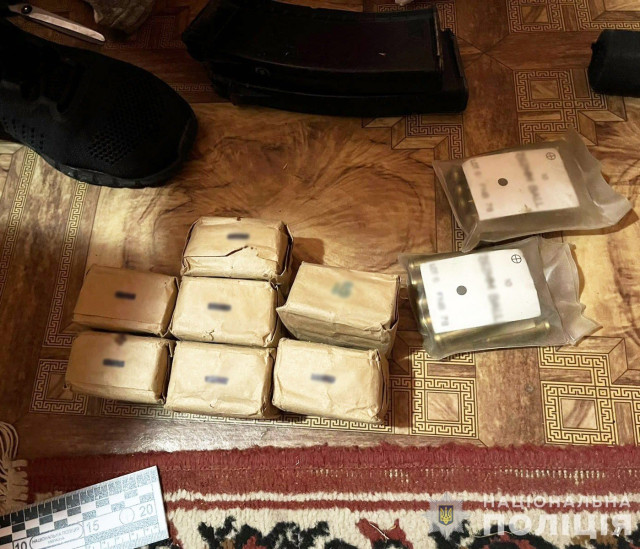 Під час обшуків в автомобілі затриманого та за місцями реєстрації спільників у Рівненській та Волинській областях поліцією вилучено мобільні телефони, банківські картки, документи, готівку. Крім того, було виявлено понад 300 набоїв різного калібру та призначення, кілька гранат, магазини та автомат АК, глушник та інші предмети, що, за попередніми даними, належать чоловікові.