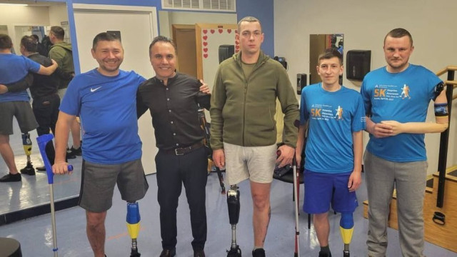 «Коли мене привезли в Дніпро, хірург питав, ампутувати чи зберігати. Я говорив: «зберігати». Але він мені пояснив, що я перебував в окопах, плюс рука була дуже довго під турнікетом. Сказав, що якщо пустить кров, то піде тромб. Не варто так ризикувати, я тебе відправляю на ампутацію», – каже боєць.Сергій Дудік разом з іншими військовими після протезування у США.