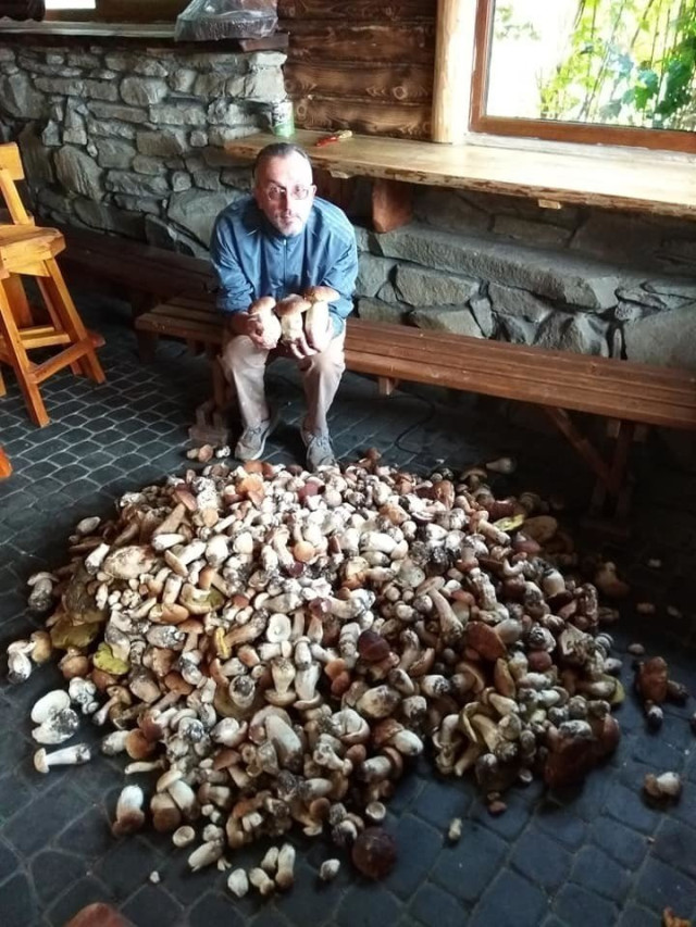 Волинський музикант і гончар Валерій Ленартович назбирав у горах чимало грибів.