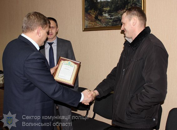Ковельські поліцейські вручили подяку 31-річному жителю Турійського району Роману Шисталюку, який затримав грабіжника.
