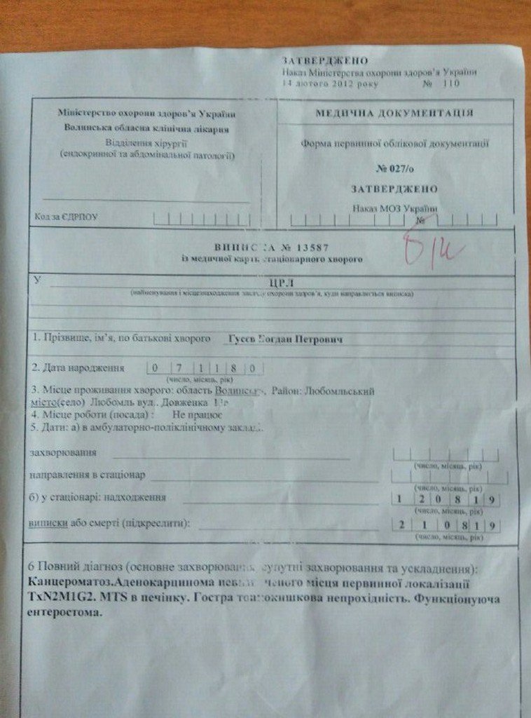 Лікарі поставили волинянину небезпечний діагноз — канцероматоз, аденокарцинома невизначеного місця первинної локалізації. Чоловік вже переніс декілька операцій, попереду — додаткове обстеження і лікування, які потребують значної суми коштів.