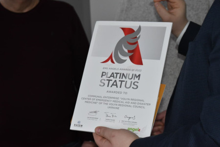 Колектив Волинського обласного центру екстреної медичної допомоги та медицини катастроф нагородили заслуженою «платиною» у премії EMS Angels Awards. Цю нагороду вручають лікарям за високі досягнення у догоспітальному лікуванні інсульту.