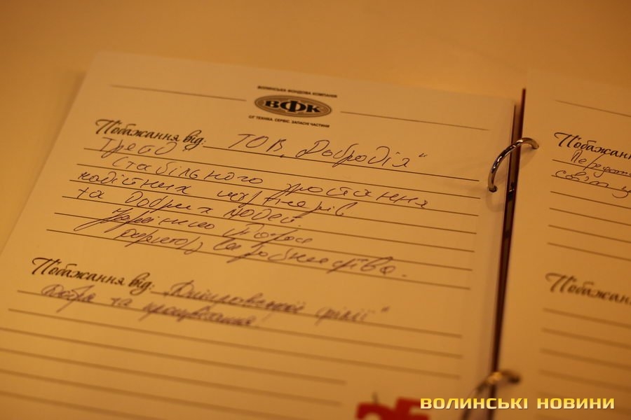 «Із самого дитинства знаємо відому приказку: хвала лукам, що пахнуть хлібом. Скільки потрібно праці, щоби цей хліб виріс, дозрів, був спечений і дійшов до нашого столу. І він потрібен постійно. І саме «Волинська фондова компанія» є одним із головних фундаторів, який стежить за тим, щоб цей хліб був добре оброблений, гарно зібраний, збережений і доставлений», – зазначив священик.