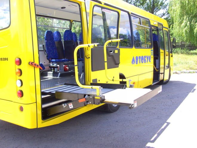 Так, автобус повинен бути обладнаний підйомником або трапом у задній частині для посадки дітей з інвалідністю.