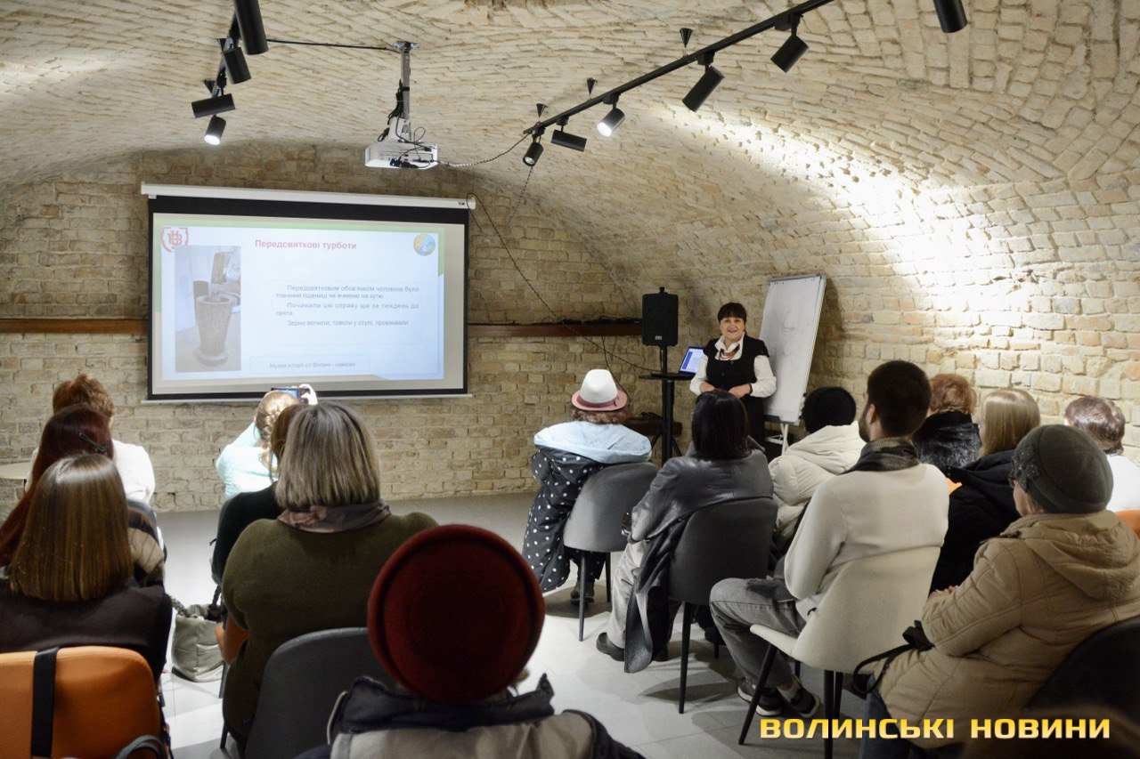 Про особливості зустрічі Коляди на Волині, зокрема про виготовлення павуків із соломи, прикрашання домівки та традиційні різдвяні страви, розповіла етнологиня, кандидатка історичних наук, доцентка кафедри музеєзнавства, пам’яткознавства та інформаційно-аналітичної діяльності Волинського національного університету імені Лесі Українки Алла Дмитренко.