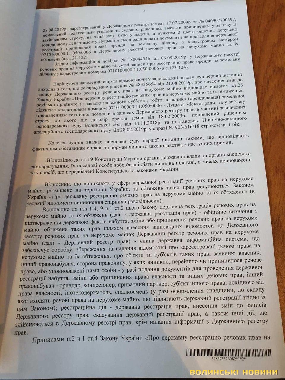12.06.2019 р. державний реєстратор, розглянувши заяву представника облспоживспілки, зареєстрував строк оренди до 11.06.2020 р. Проте 21.08.2019 р. Луцька міська рада звернулася до держреєстратора із заявою про виправлення технічної помилки, відтак реєстратор її виправив й строк дії договору був визначений до 27.08.2019 р. А вже 5.09.2019 р. Луцька міська рада ухвалила рішення про припинення договору оренди землі для обслуговування ринку.