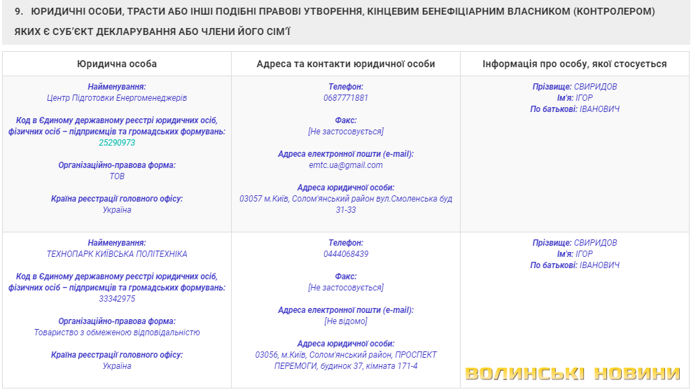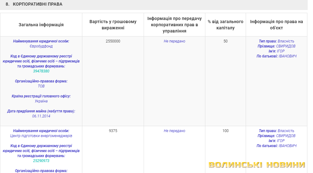 Директором новоствореного на Волині держпідприємства став Ігор Свиридов. Декларація його як кандидата на посаду з’явилася того ж таки 7 лютого.