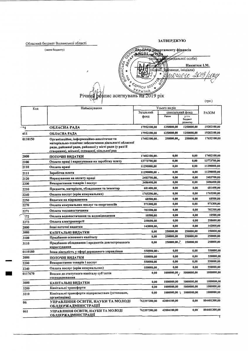 Попри доручення голови Волинської ОДА Олександра Савченка заблокувати виконання прийнятого бюджету на 2019 рік, департамент фінансів ОДА затвердив постійний розпис обласного бюджету та подав його в держказначейство, фактично розпочавши його виконання згідно з рішенням сесії Волиньради.