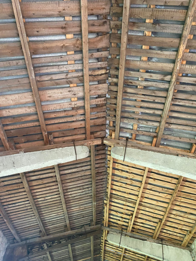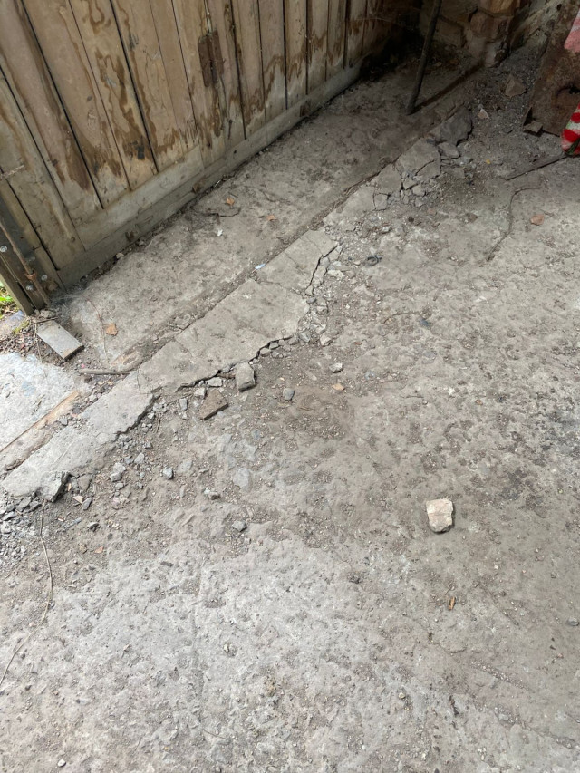 фундамент – бетон, стіни – цегла, покрівля – азбестоцементні листи, перекриття – дерево, підлога – цементна стяжка;