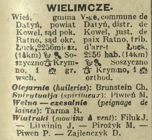 У 1929 році в селі мололи борошно п’ять вітряків, власниками яких були Й. Філюк, Є. Літвінін, М. Пірожик, П. Півень та Д. Зайленчик. Тоді у Велимчі мешкало 2256 осіб і за чисельністю населення село майже зрівнялося з Ратним (2410 мешканців). Окрім того, в селі працювала оліярня Брунштейна та чесальня вовни Тарма, а М. Півень продукував горілку.