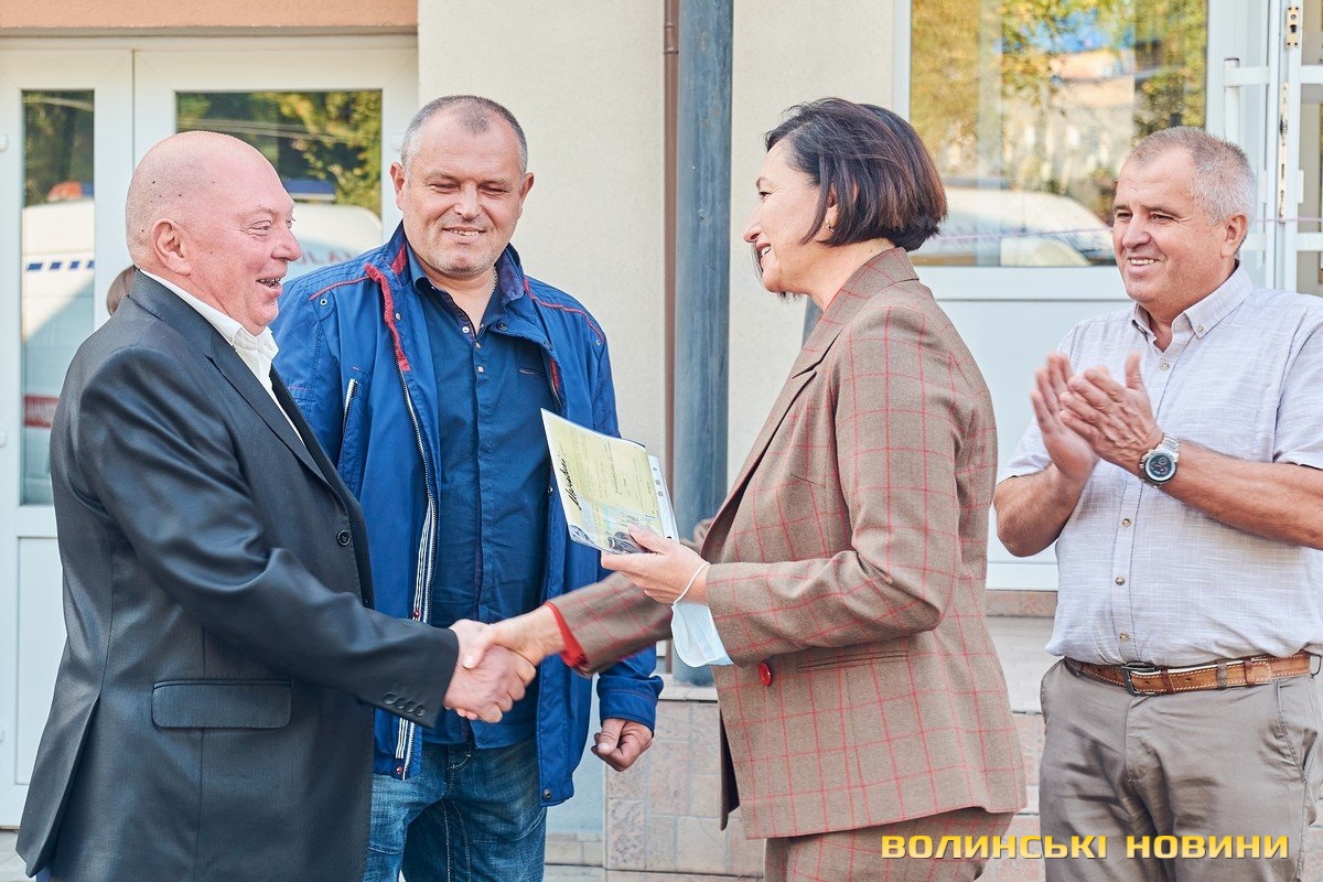 «А третя причина для радості – та, що ківерцівський автомобіль швидкої поїде в Цумань, – додала народна обраниця. – Бо там машина, таке враження, ще позаминулого століття: деренчить, здається, що розсипається на ходу. Отож, 23-й округ отримує три автомобілі. Особлива вдячність за це – Володимиру Шмалю. Те, що ми маємо ці автомобілі, – результат великої організаційно-адміністративної роботи. Це ще один показник високого рівня керівника».