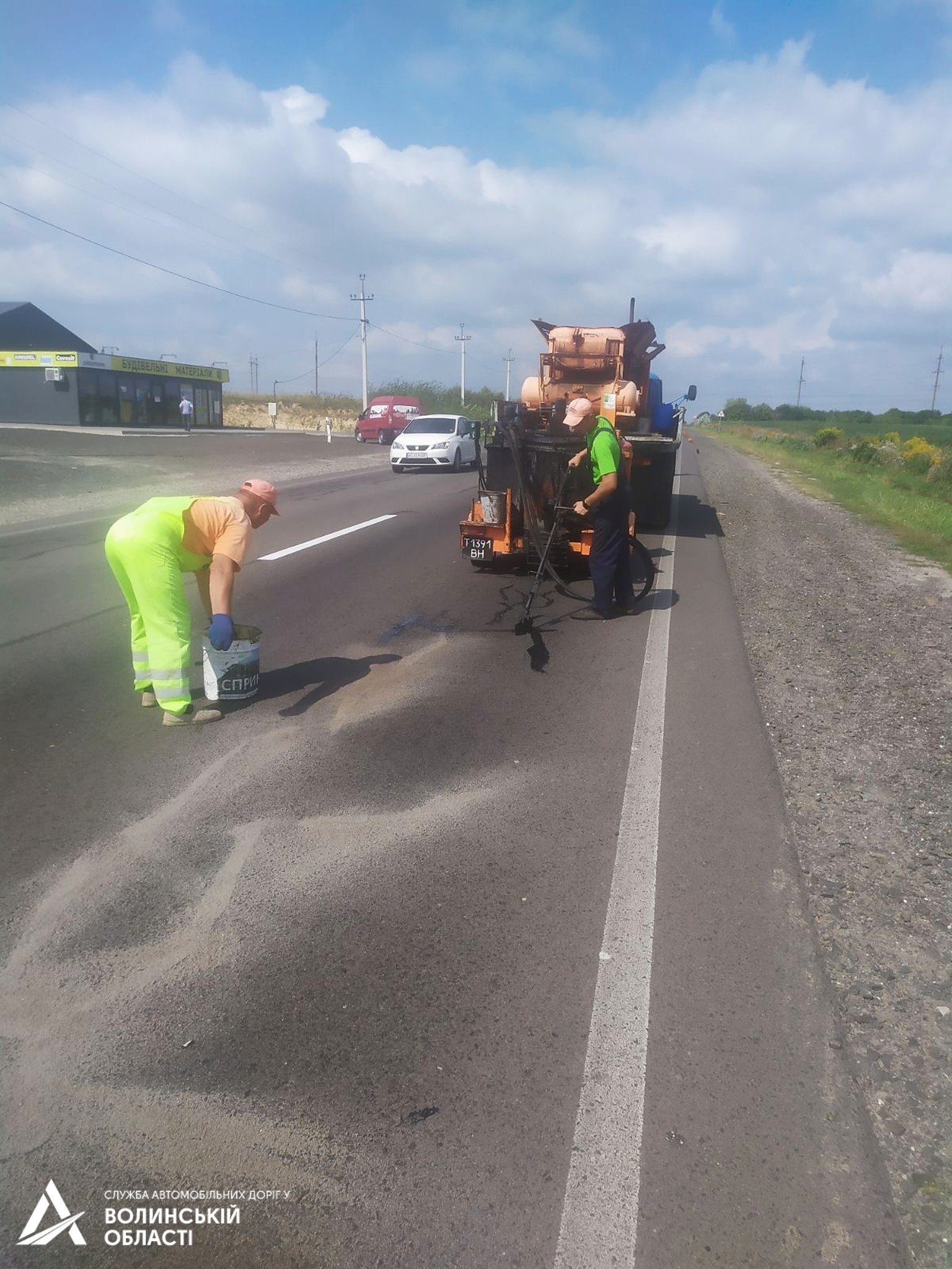 Зокрема, працівники підрядного підприємства ТОВ «Експодор» загерметизували поздовжні тріщини на відтинку Терешківці – Гірка Полонка автошляху Н-17 Львів – Радехів – Луцьк.