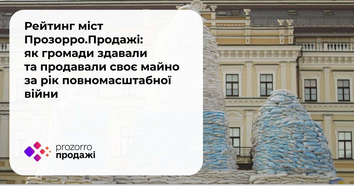 Прозорро.Продажі склали рейтинг міст, які найактивніше використовували онлайн-аукціони у державній електронній торговій системі для управління комунальним майном за рік повномасштабної війни.