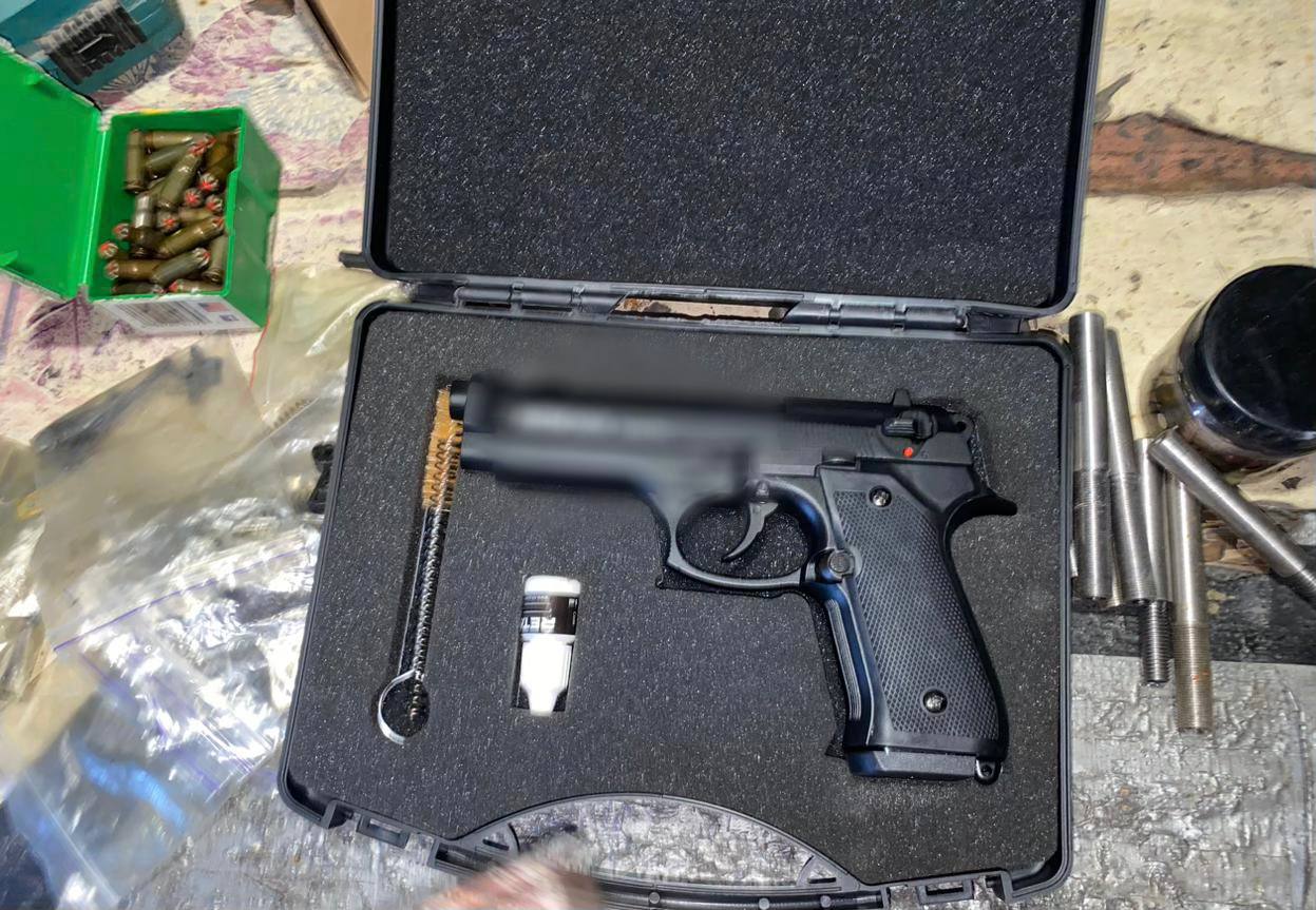 За місцем проживання та перебування фігуранта правоохоронці провели санкціоновані обшуки, вилучено знаряддя для переробки зброї, комплектуючі, патрони, мобільні телефони та чорнові записи, що свідчать про незаконну діяльність.