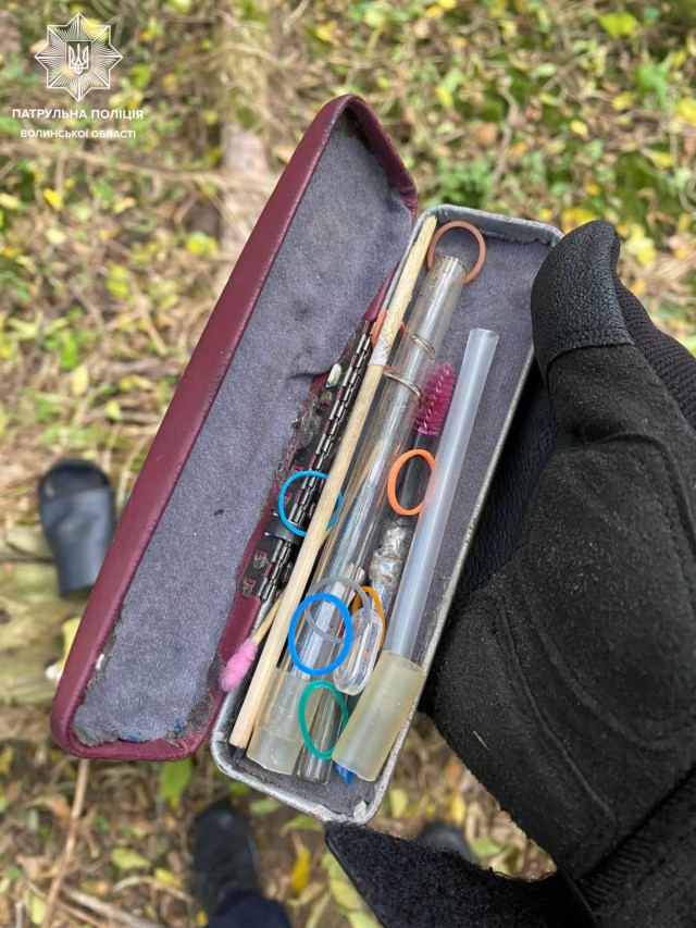 Ще один випадок трапився нещодавно. Під час пішого патрулювання у центральному парку міста поліцейські помітили чоловіка, який щось шукав на землі. Інспектори провели поверхневу перевірку та виявили контейнер, у якому була біла порошкоподібна речовина та пристрої для її вживання.