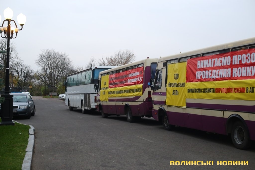 Учасники акції протесту нарікали на нелегальних перевізників, які перевозять пасажирів на Волині, не сплачуючи жодних податків та не уклавши договорів. Вони запитували у посадовців, скільки протоколів щодо таких недобросовісних перевізників склали цього місяця. Також нарікали на те, що в конкурсах отримують перемогу підприємці, які не мають належних транспортних засобів, бази тощо натомість АТП програють конкурси. Перший заступник голови ОДА не зміг надати цю інформацію, а очільник департаменту інфраструктури та туризму зазначив, що департамент не складає таких протоколів, це робить Укртрансбезпека.