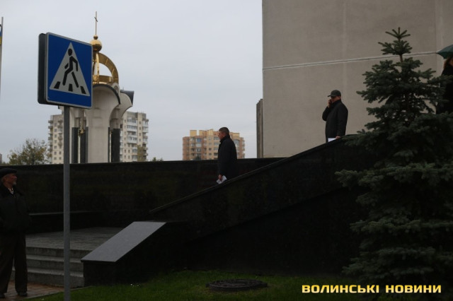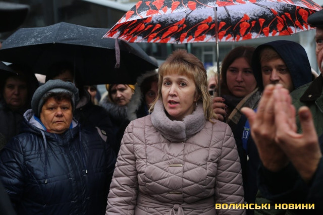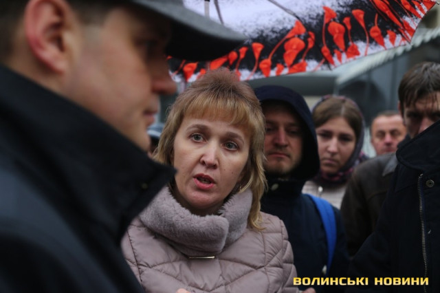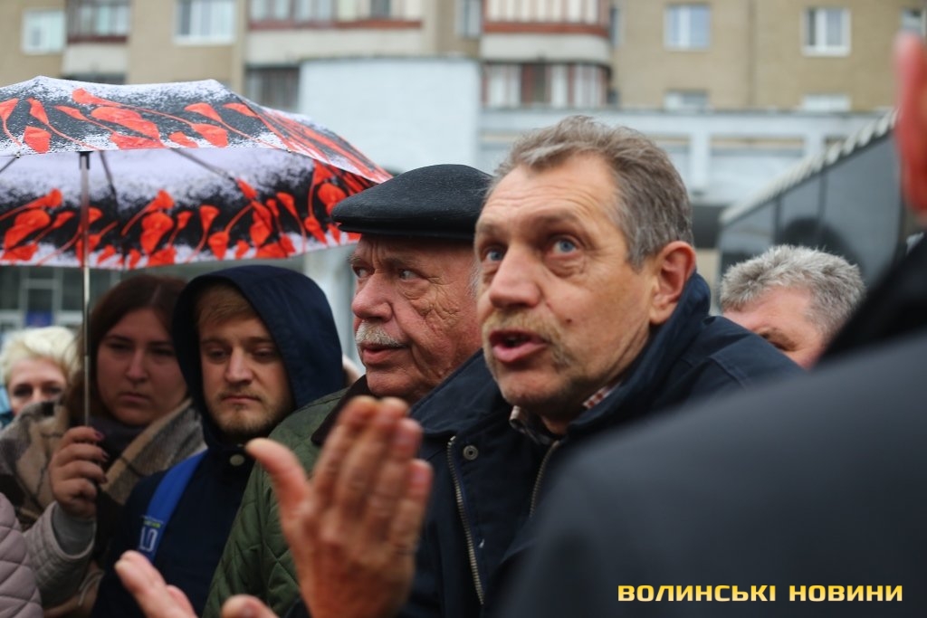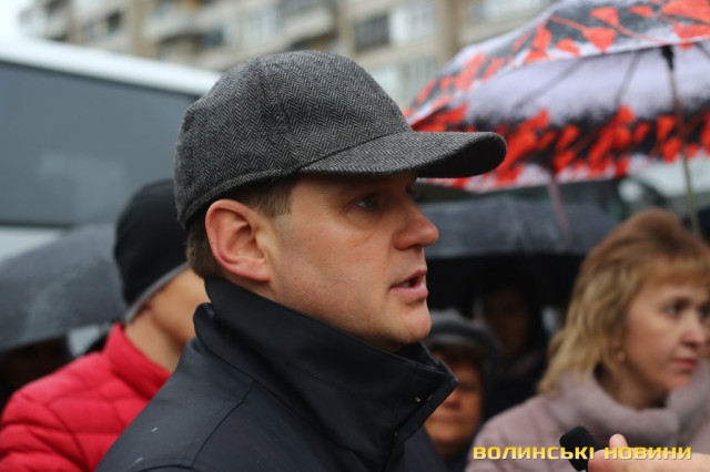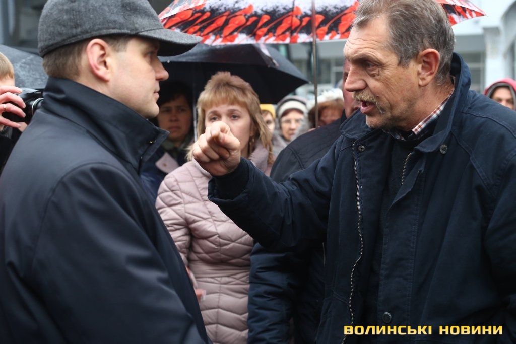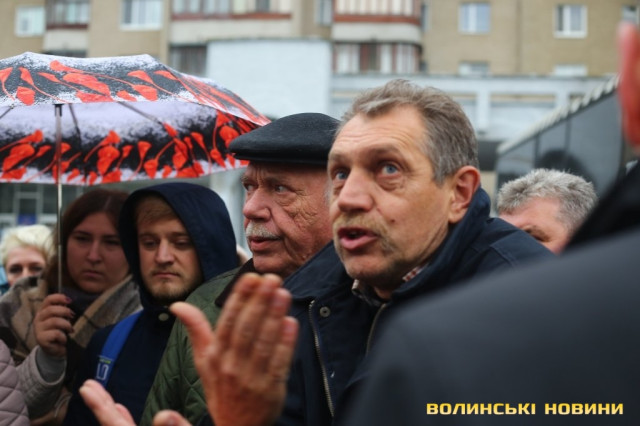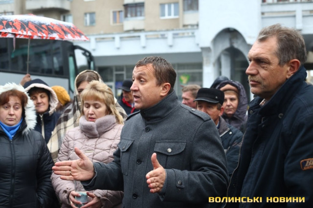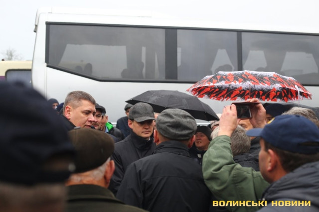 До пікетувальників вийшли директор департаменту інфраструктури та туризму Волинської ОДА Іван Мирка та перший заступник голови Волинської ОДА Олександр Степанцов.