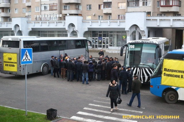 Непрозорі конкурси, через які десятки працівників опиняються під загрозою звільнення – під стінами облдержадміністрації пікетують представники підприємств-перевізників з різних районів Волині.